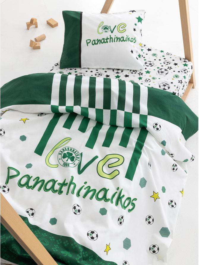 Σετ Σεντόνια Βρεφικά Official Team Panathinaikos F.C. 130×170 FC11 από ύφασμα 100% cotton 144 κλωστών ανά τ. ίντσα. Το κατωσέντονο με λάστιχο διατίθεται σε διάσταση 70×140+15.
